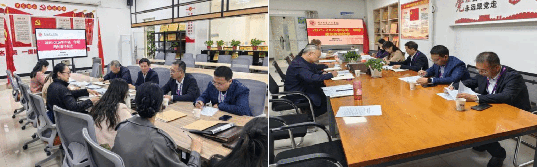 为进一步规范教学动态管理,持续提升教学质量,确保新学期教学工作有序开展与有效落实,9月28日,Bwin·必赢体育联合校督导委员会深入各教学单位,开展了2025—2026学年第一学期期初教学检查。本次检查由主管教学的副校长潘庆才带队,分为四组,以院部自查与学校抽查并行的机制,重点检查了日常教学秩序的、教研活动情况、实践教学的开展、毕业论文及期末试卷归档等内容。