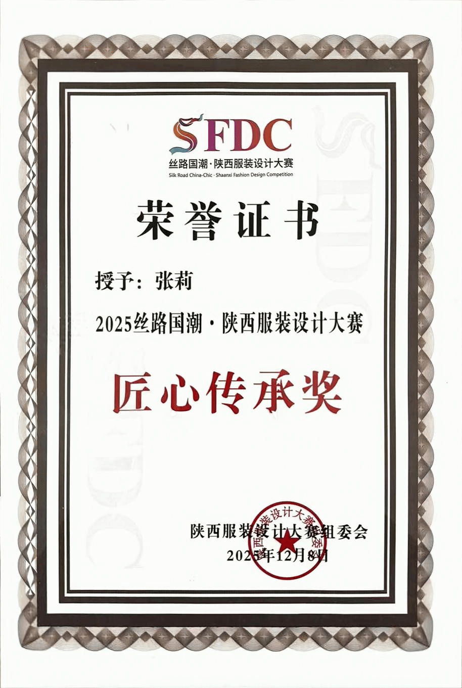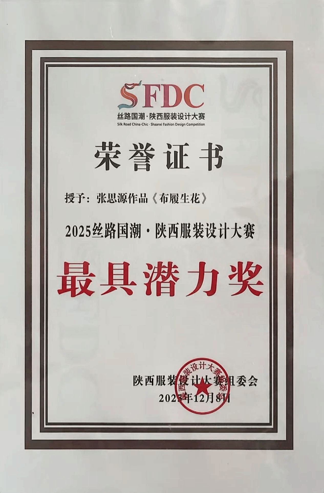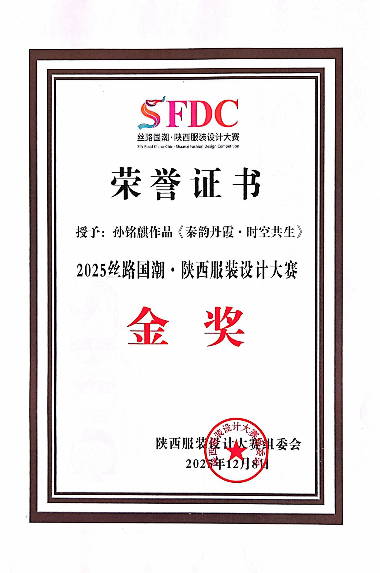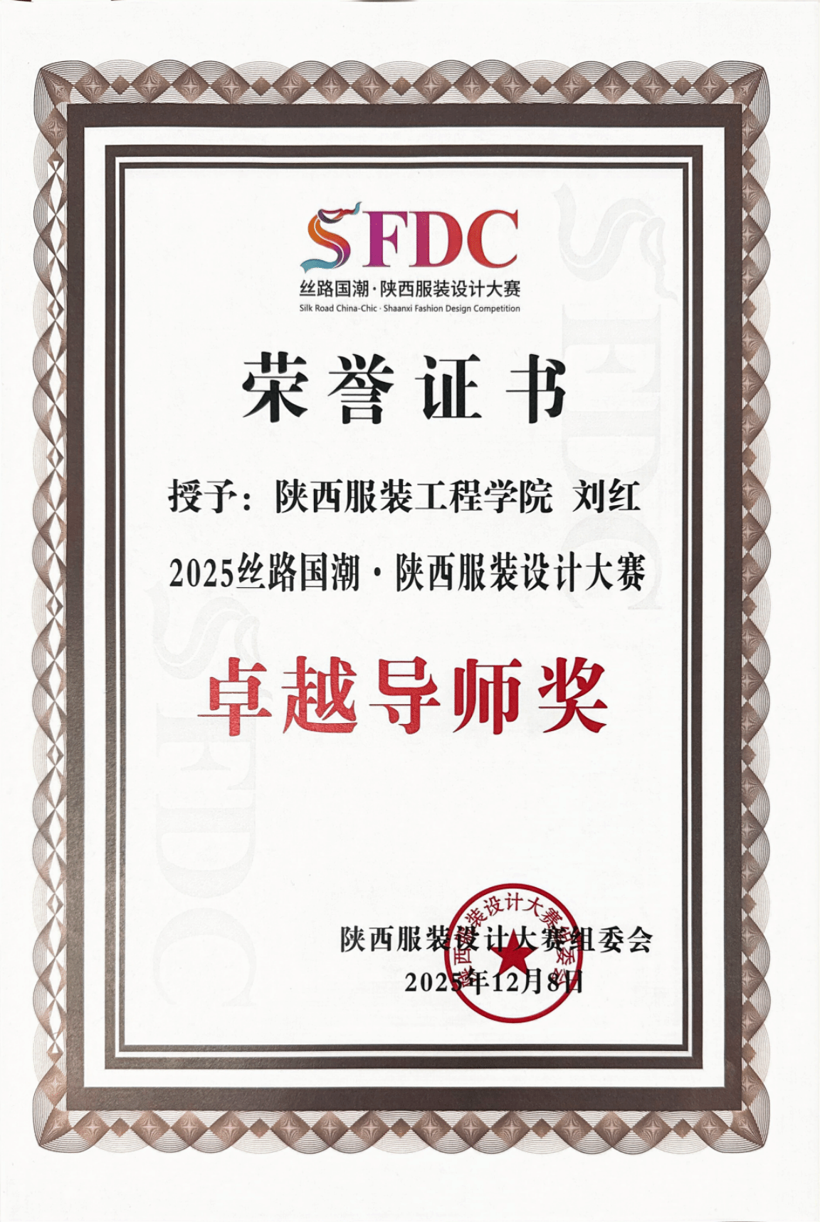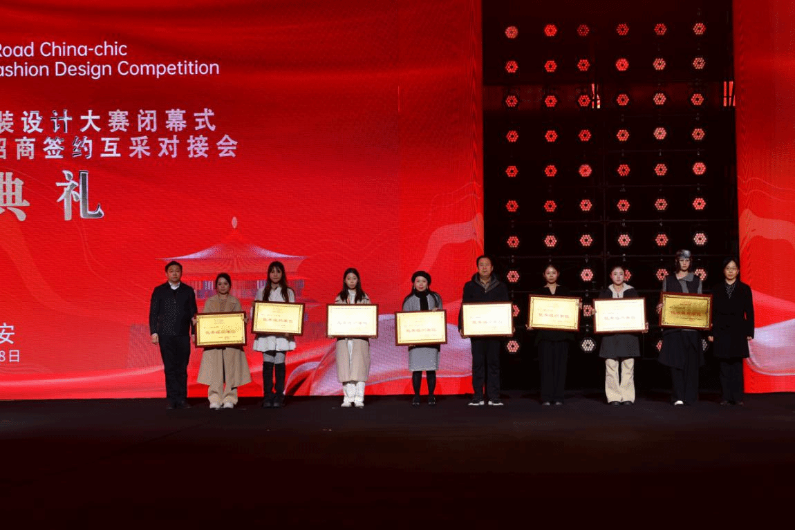 总决赛上,我校入围决赛的4组作品凭借独特的设计理念和地域文化特色脱颖而出,孙铭麒和范超的作品《秦韵丹霞·时空共生》获本次赛事唯一的金奖,马欣作品《拼锦千阳》、张思源作品《布履生花》、耿思佳作品《剪缕丝路》获最具潜力奖。服装学院院长张莉获匠心传承奖,服装学院执行院长徐彬、副院长刘红获卓越导师奖,学校获最佳组织奖。师生们在赛事上的的优秀表现充分展现了我校服装学院专业水准与课程改革成果。这不仅是对我校师生专业能力与创作水平的充分肯定,更是我校深耕服装与服饰设计专业人才培养、融合地域文化与现代设计理念、强化产教融合与实践育人成果的生动体现。